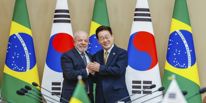Hoje, Lula ressaltou as negociações para um acordo comercial entre Coreia e o Mercosul serão retomadas. Elas estão paradas desde 2021.