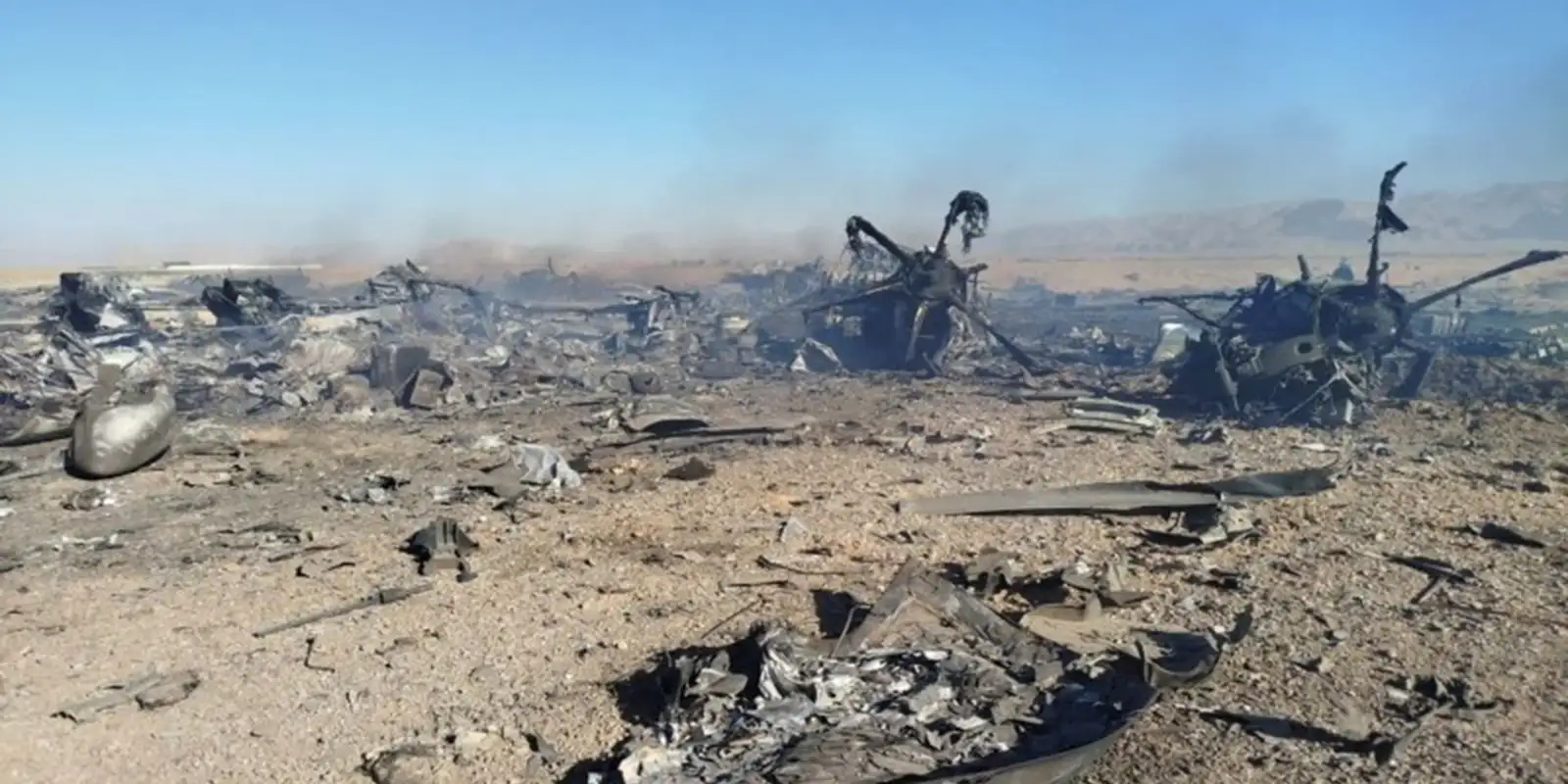 As fotos mostram destroços do que parecem ser dois helicópteros. Segundo a Tasnin, foram abatidos dois helicópteros Black Hawk e um avião de transporte C-130. “O porta-voz disse que a operação resultou na destruição de várias aeronaves hostis e descreveu o resultado [da operação] como outra derrota humilhante para os Estados Unidos, traçando paralelos com a fracassada operação Eagle Claw, de abril de 1980”, acrescentou a agência.
